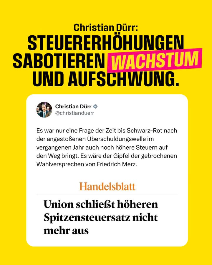 Christian Dürr: „Dass mit dem Rentenpaket ein Gesetz beschlossen wird, von dem Friedrich Merz selbst sagt, dass nichts dafür spricht, zeigt, dass seine Koalition heute gescheitert ist. Es dient nur noch dem Machterhalt, aber nicht dazu, das Land besser oder die Renten sicher zu machen. Das Einzige, was die Koalition von Friedrich Merz noch zusammenhält, sind immer neue Schulden. Was man statt leerer Versprechen von Friedrich Merz jetzt eigentlich bräuchte – gerade bei der Rente – wären mutige Reformen, zum Beispiel mit einer Aktienrente.“